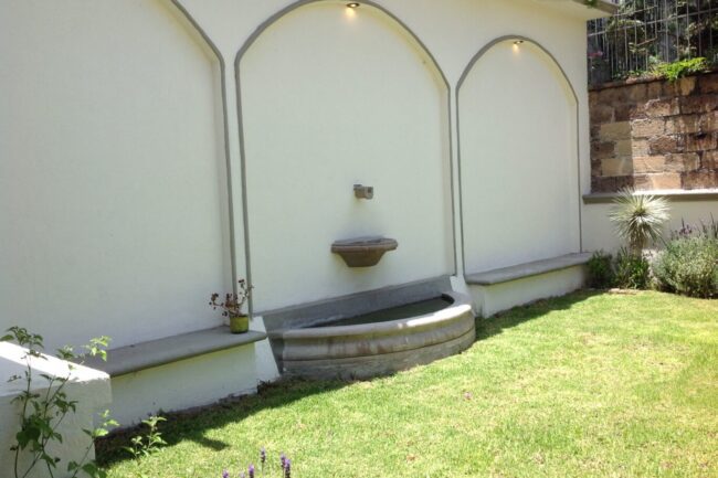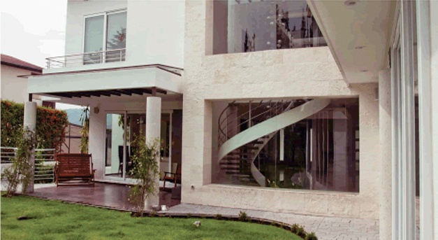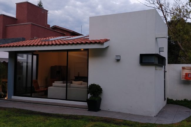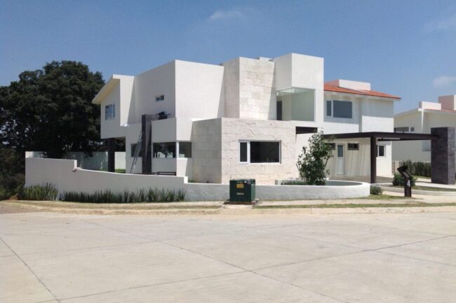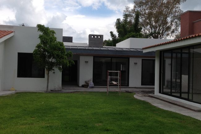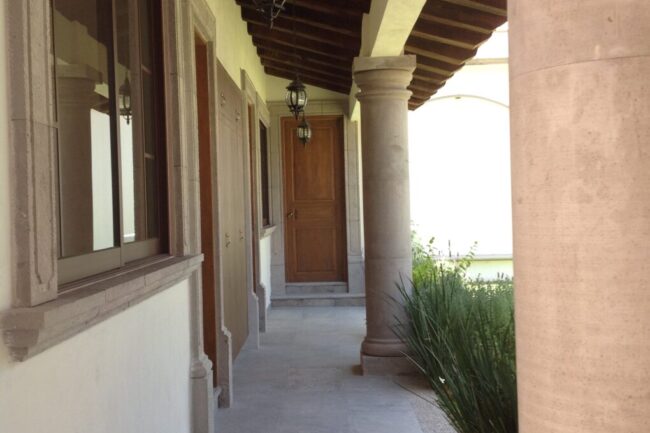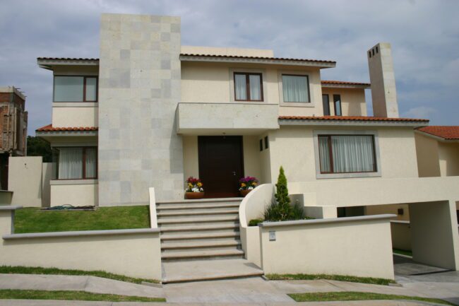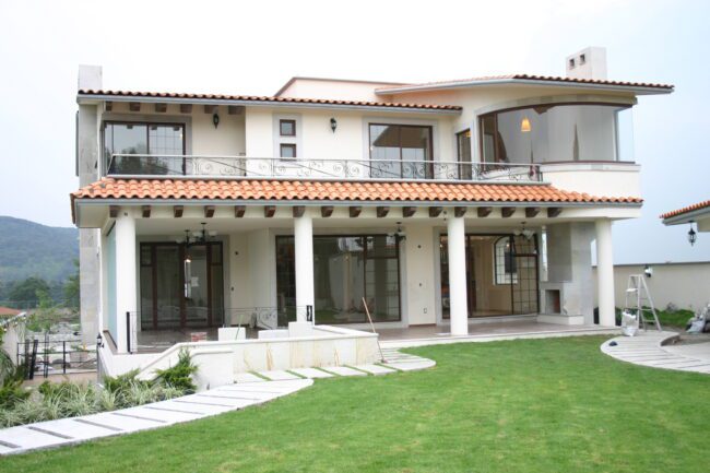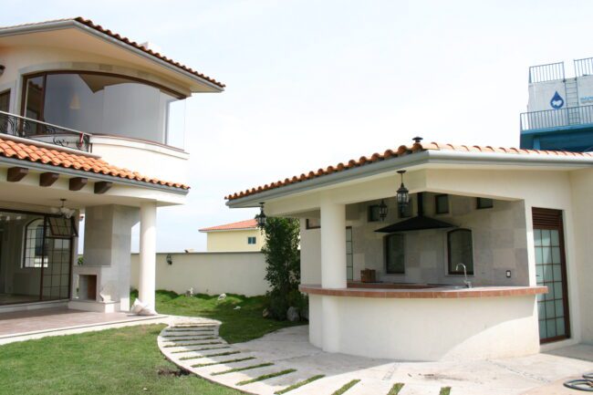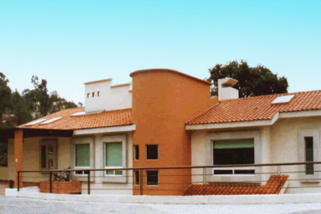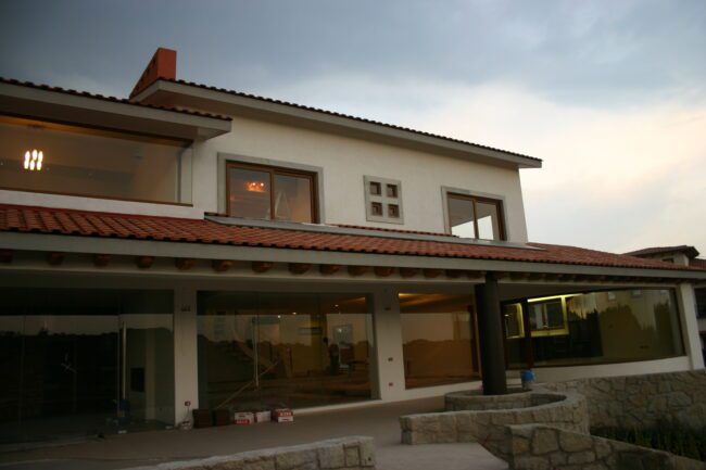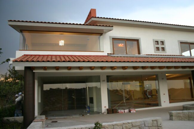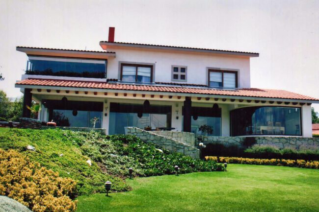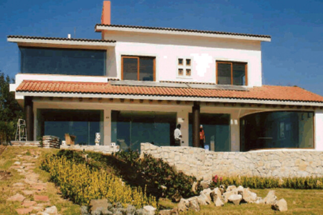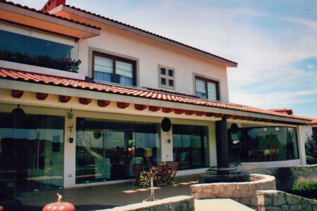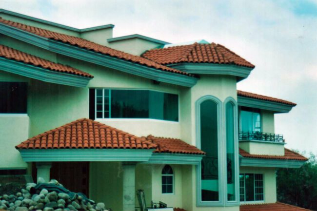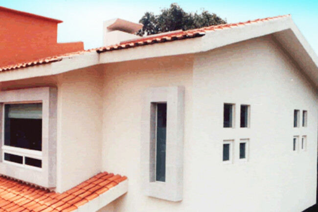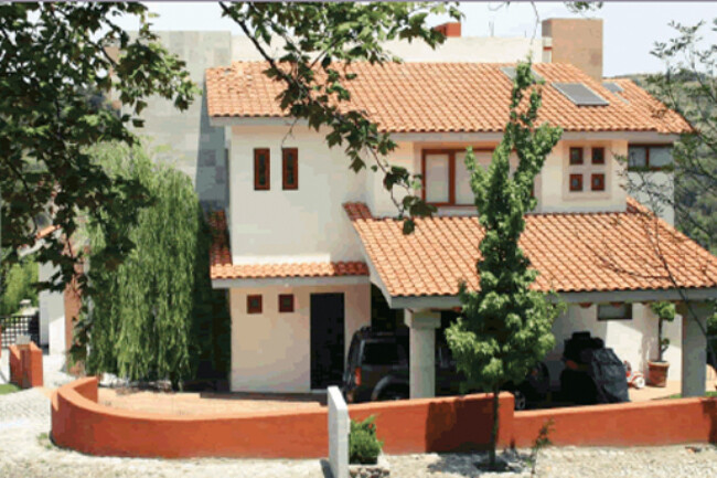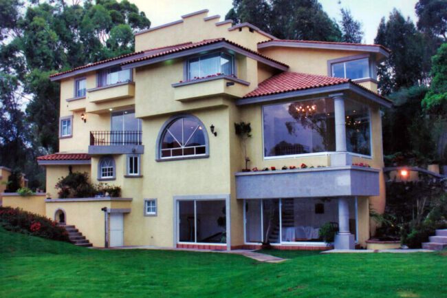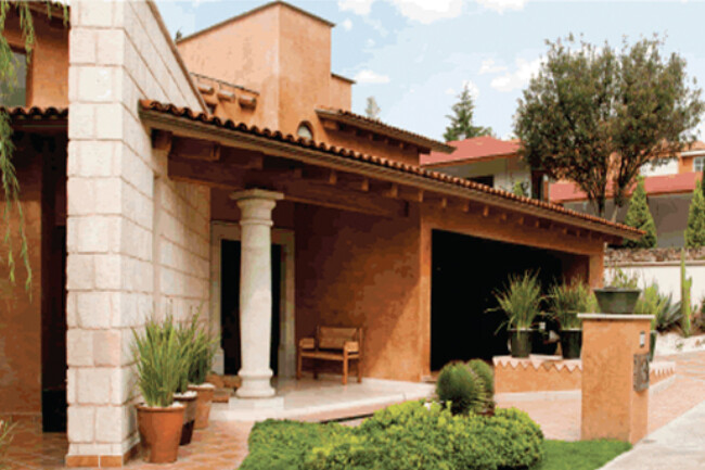 They generally have sloping ceilings, wood finishes, visible partitions, clay, tiles, paneling, andirons, modern iron, textured coatings and concrete columns; contrasting and washed colors are used.
